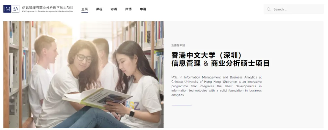 随着大数据技术的不断发展和市场对数据分析人才需求的不断增多,商业分析专业的热度一直居高不下。作为全球金融中心的香港和新加坡自然也不会错过BA发展的浪潮,在近几年内接连开设了多个BA硕士项目。今年9月10日,香港中文大学(深圳)信息管理与商业分析硕士项目正式开放,对于打算申请港新地区BA硕士的同学来说又增加了一个可供选择的项目。今天,我们就先来详细了解一下港中深新开设的这个BA项目。港中深信息管理与商业分析硕士项目由港中深商学院开设,学制2年(而港新地区此前的BA项目都是1年制),学费25.2万元。作为21fall新开设的BA项目,该项目旨在培养兼顾商业分析技术和信息技术的复合型专业人才,以适应银行、金融、市场营销、智能制造、供应链和物流、国家安全、咨询等等行业的人才需求。因此,项目也分为商业分析和信息管理两个方向,(最终的学位证书是一样的,在官方成绩单上会标注不同的分支方向)。两个方向的课程不少都是重合的,都会涉及到数据分析、机器学习、计算机科学等方面,其中商业分析项目旨在培养学生对数据进行深度分析和挖掘,以实现大数据应用在金融、科技、电商、健康等领域的商业价值;而信息管理方向则致力于培养学生将数据转换为商业信息,从而为企业数字化提供解决方案。