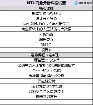 NTU除了BA项目外,其实还有一个分析学硕士项目,相对来说会更加偏tech,计算机、数学、统计背景的同学可以考虑申请分析学项目,商科背景的同学则更建议BA项目。