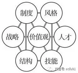 7S模型 —— 指出企业战略必备的7个要素。大致分为硬件3S(战略、制度或系统、组织结构)和软件4S(价值观、能力或技能、企业风格或经营模式、人才)。
