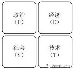 PEST — 从政治(Politics)、经济(Economics)、社会(Society)、技术(Technology)4个视角分析构成企业组织的外部环境。