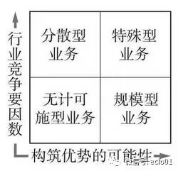 优势矩阵(AdvantageMatrix) — 从关键竞争因素的多少,以及构筑行业优势可能性的大小两个坐标轴出发,把行业分成4种类型。类型不同,采用的战略会随之变化。