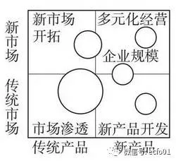 安索夫矩阵 — 通过新旧市场组合和产品组合分析企业经营战略的模式。分为市场渗透战略、新产品开发战略、新市场开拓战略、多元化战略4个选项。