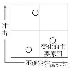 情景规划 — 采用情景规划法对几种未来可能发生的情况进行立案时,用冲击性和不确定性两个坐标轴对各种扑朔迷离的变化原因进行分析,以此界定关键要素(Scenario Driver)。
