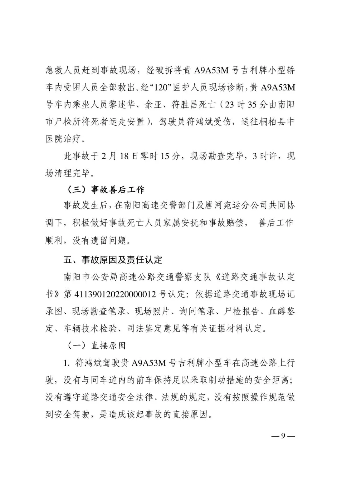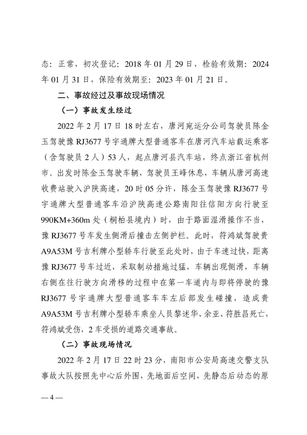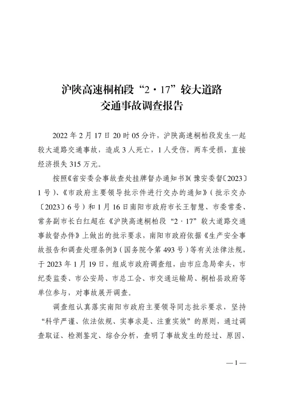 交通事故调查报告:2022年沪陕高速桐柏段2.17较大道路交通事故