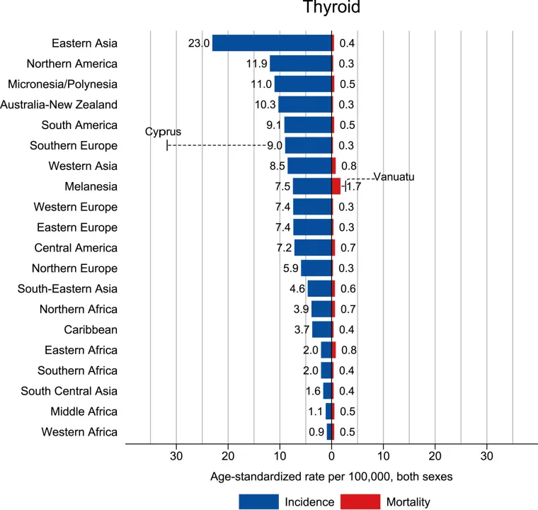 中国:死亡率下降,甲状腺癌较全球更多