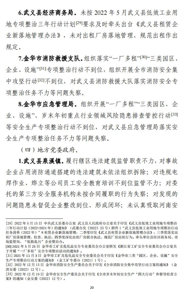 4.周文华,武义县应急管理局党委委员、安全生产基础科科长,对事故发生负有直接责任,给予政务降级处分。