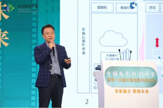 国家一级导演、中国电影家协会电影数字制作工作委员会会长江海洋影视科技技术分享环节,北京电影学院美术学院副教授薄一航,就数字人文视阈下AI对电影领域的赋能进行了讲解;中影电影数字制作基地副总经理马平指出,科幻电影有效提升了电影工业生产分工化、专业化与流程化发展水平;1905电影网董事长李玮,就中国内容的海外传播提到,人工牵手AI智能,将使更多内容“走出去”成为可能;凌云光元客视界副总经理李淼展示了如果创造栩栩如生的数智世界,希望用科技共同赋能全国百城千棚数字化、智能化;北京天图万境科技联合创始人张开,介绍了全球唯一可以完整拍电影的虚拟制片平台,强调工业化也要以好用为基础;天津大学灵然创智工业元宇宙联合研究中心主任王一夫,阐释了云制作利用强大的数字底座,把制作依赖的软硬件平台从线下搬到云上,并重点解决远程协同问题的原理。