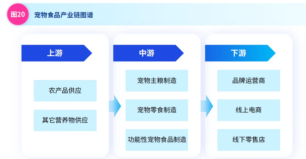 宠物用品供应链由上游的化工材料及半成品供应商、中游的宠物用品生产商,以及下游的宠物服务企业、动物医院和贸易代理组成的零售网络共同构成。整个供应链呈现出多元化、分工明确的特点,各环节之间形成了紧密的协作关系。