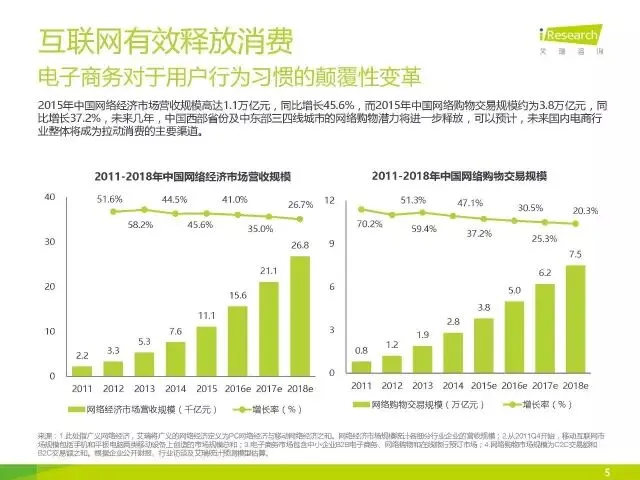 报告认为,居民消费过程中,互联网有效释放了消费,电子商务对于用户行为习惯带来了颠覆性变革。