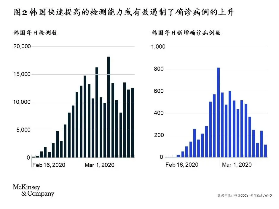 在一系列行之有效的社交隔离限制(social distance)措施下,病例增长有所放缓,这些措施包括全国性和地方性的隔离,员工减少差旅和在家办公,以及民众的相关选择。检测能力足够强大,能够满足需要,才能更加精准地掌握疫情发展。