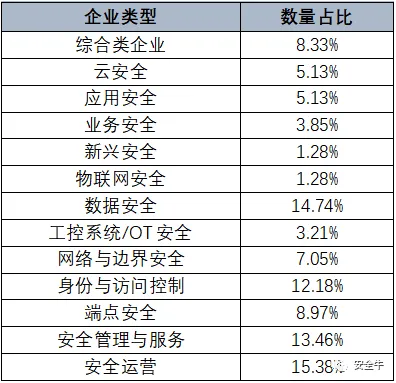 以下厂商分布情况是根据安全牛收集整理百强及全景图企业得出,基本覆盖安全行业各个领域(极小部分企业未收录,对整体比例不造成重要影响),情况如下: