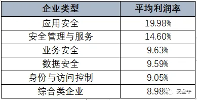 经统计,整个网络安全行业的平均利润率约为7.83%,其中超过行业平均值的领域分别为: