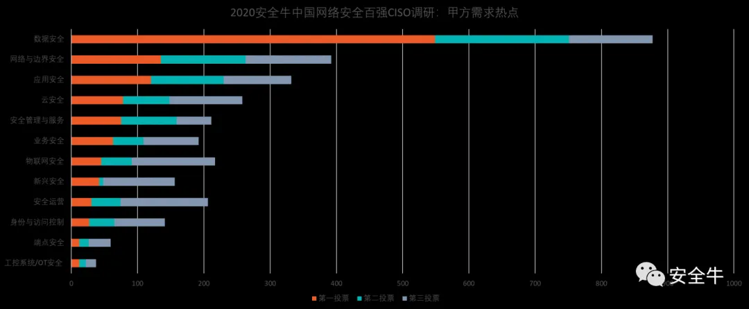 发现5:随着数据成为企业发展的重要资产,大数据安全、数据防泄密、隐私保护等数据安全问题,成为甲方用户在本次调研中,重点关注的保护和建设方向。在安全牛网络安全百强CISO调查的72个细分安全领域中,大数据安全、数据防泄漏、web安全、APP安全、高级威胁防护和隐私增强等是CISO最关注的细分安全领域。