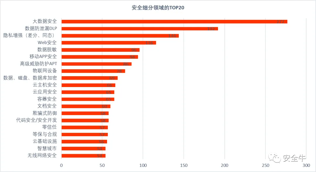 安全牛又根据其72个细分分类,在甲方全客户群体中调研并按五档优先级排序,整理前20个细分领域如下所示:
