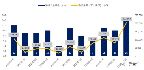 图3:2020年境内网安融资按月份统计