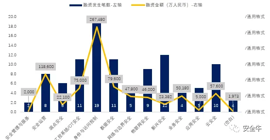 2019年按交易金额统计:截至2019年年末中国网安市场发生交易笔数前三的分别为身份与访问控制18.4亿元人民币,安全运营14.0亿元人民币和数据安全10.1亿元人民币。