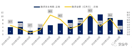 图7 :2019年境外网安融资按月份统计
