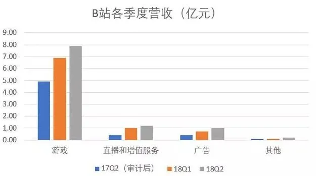 B站的收入结构也一直饱受诟病:游戏业务占了大头,广告、直播、增值业务等其他业务却迟迟难见起色。