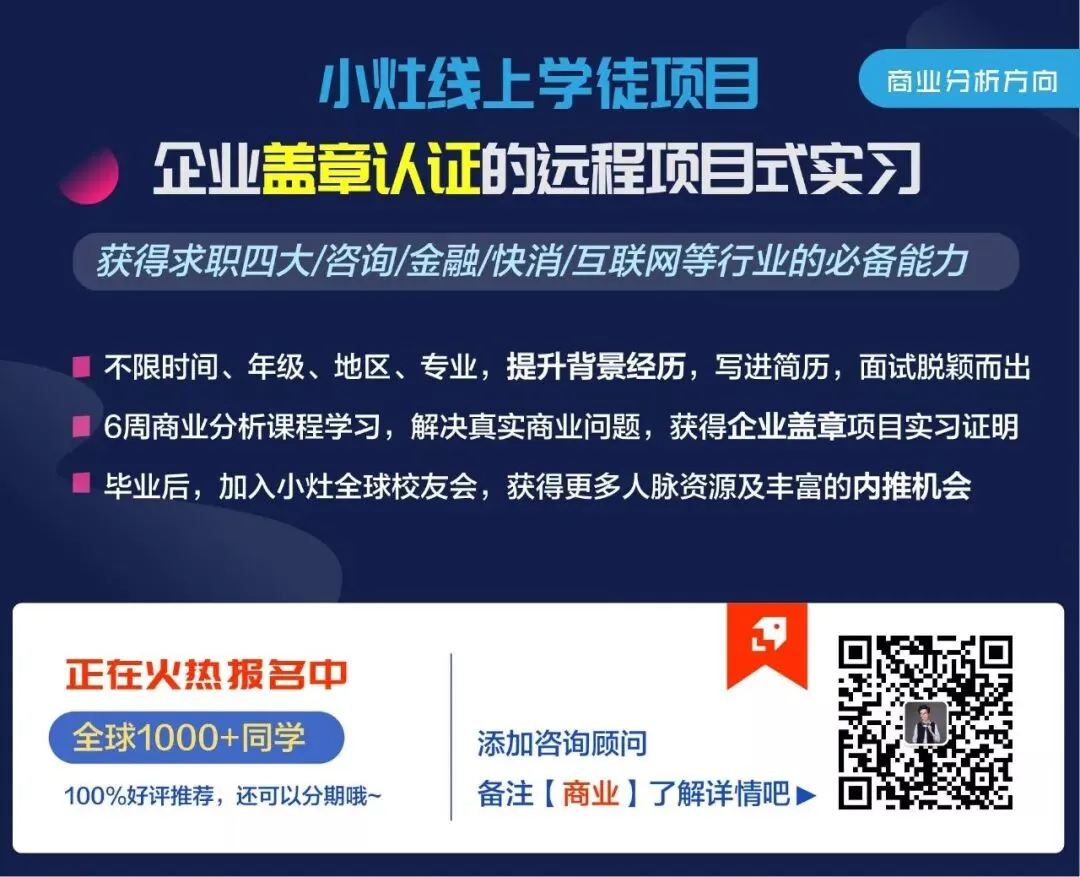 【小灶线上学徒—商业分析方向】就是希望通过解决真实的商业问题,提高大家的商业分析能力。