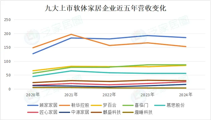 软体家居作为家居消费的核心赛道,涵盖沙发、床垫、软床等核心品类,其发展轨迹始终与房地产周期、消费升级趋势、供应链变革深度绑定。九大上市软体家居企业作为行业发展的“晴雨表”,其近五年的营收变化不仅折射出头部企业的战略取舍,更勾勒出中国软体家居行业的演进脉络。