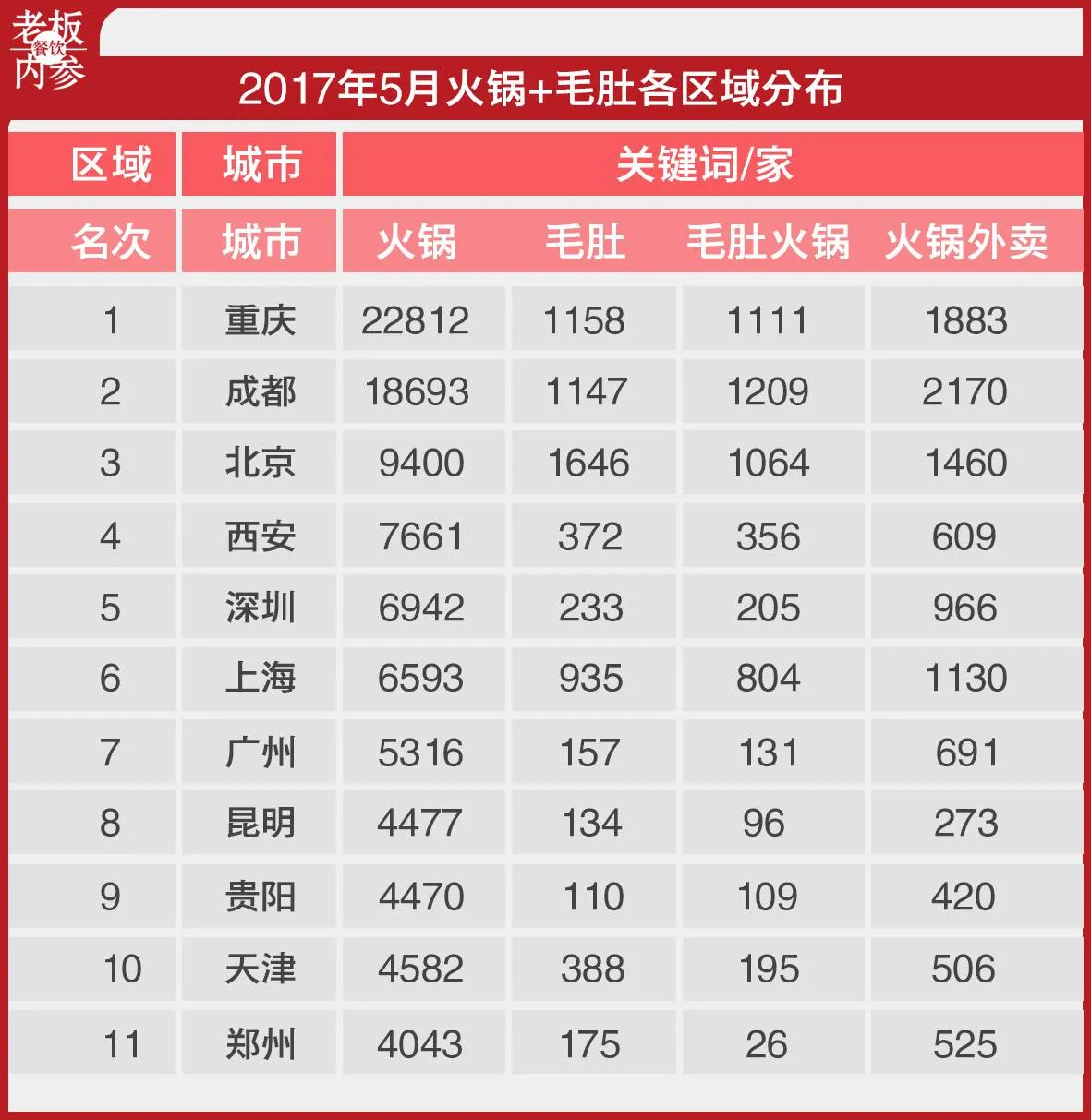 其中巴奴和大渝主打毛肚,其他品牌也把毛肚作为主打菜品之一。无锡作为一个缩影,背后其他三四线城市毛肚火锅热也随之兴起,郑州作为华中区的火锅之城,几千家火锅里毛肚火锅也越来越多,主打鲜毛肚的火锅跟传统火锅形成明显区隔。
