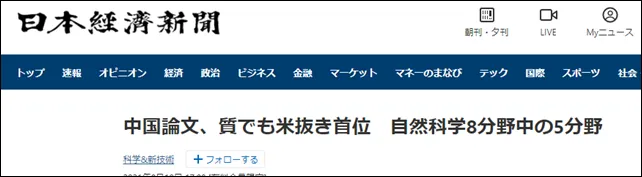 近些年来,中国在科技领域发展势头强劲,据日媒报道,在科学领域的论文的影响力上,中国已经首次超越美国,位列世界第一。