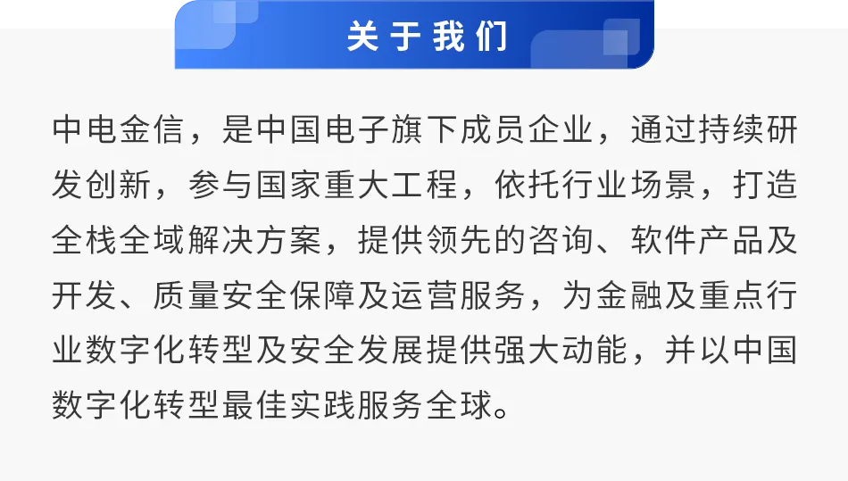 作为数字化经济中抵御风险的核心能力,原创性技术攻关及其自主创新生态体系建设是当下产业界亟需共识、共建的问题。结合传统安全防护体系,实现可信内生安全、开源体系安全、技术供应链安全,中电金信致力于为行业带来深度融合场景的系统性安全产品与服务。