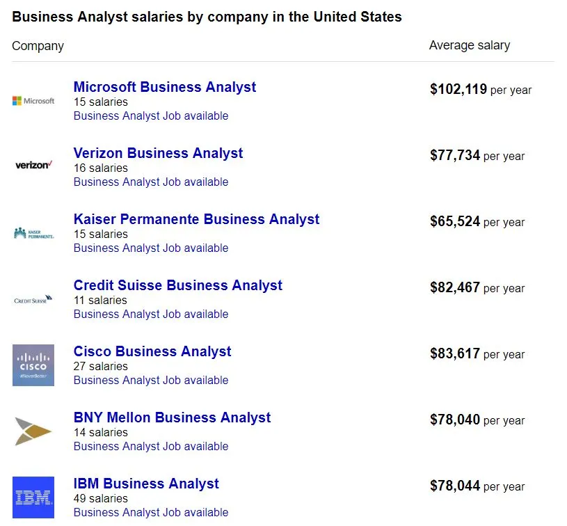 各大公司给BA岗位开具的薪资,大都已领先行业平均