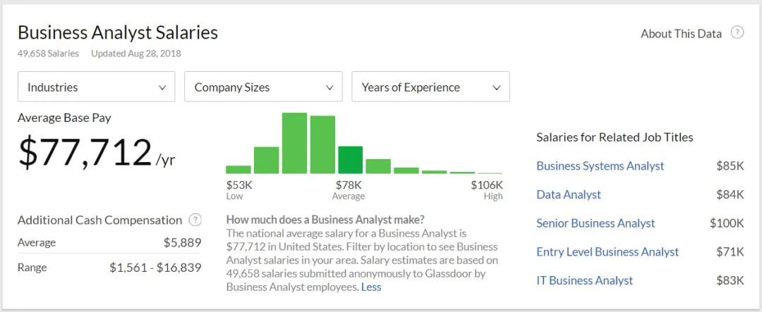 美国BA岗位平均薪资,作为Entry Level级入门,平均年薪便能高达$77712,高的甚至能达到月薪$16839