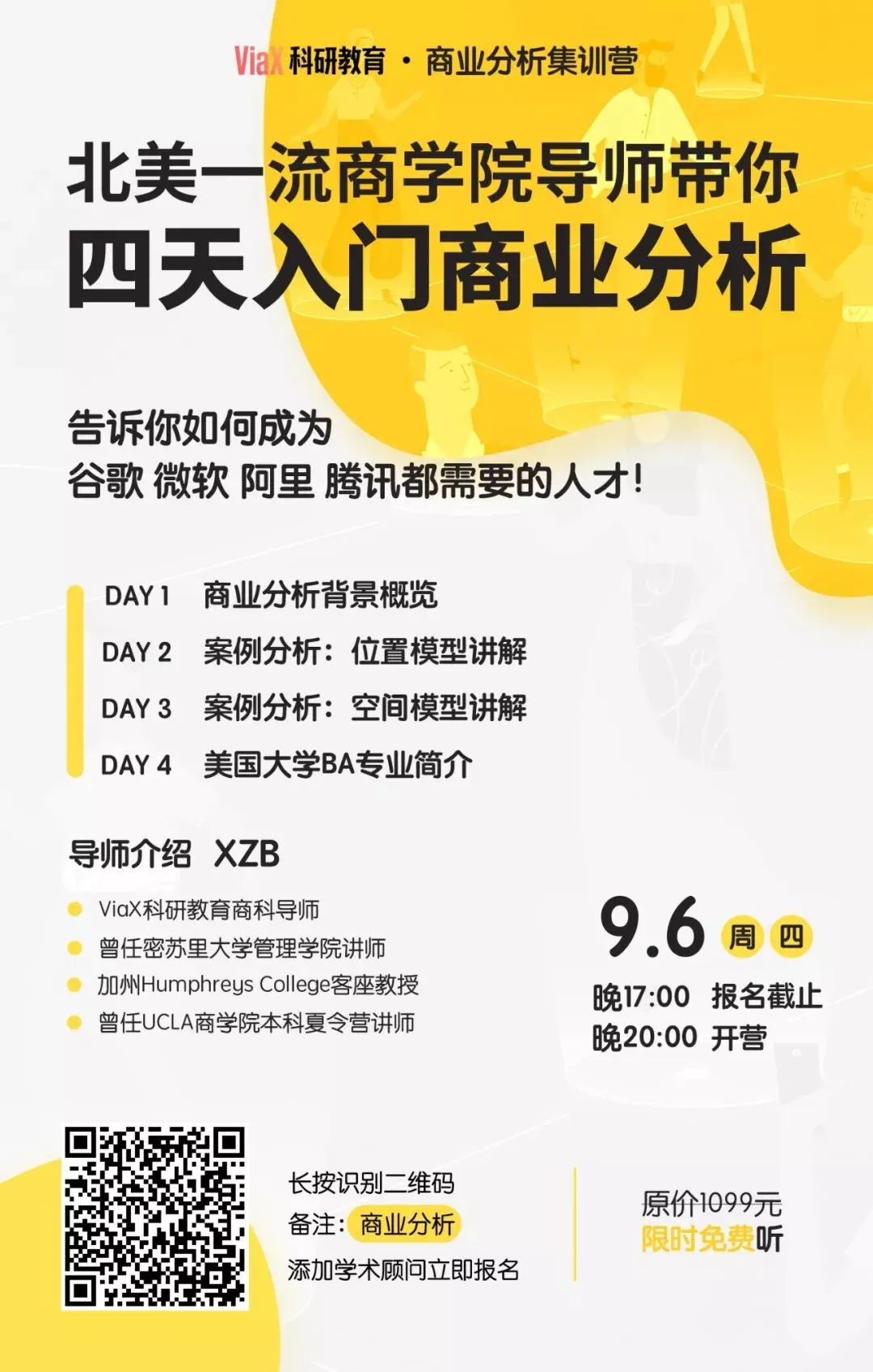 针对这个现状,ViaX科研教育专门开设了4天入门商业分析集训营。1000多个日夜精心打磨的科研体系,伯克利国家实验室研究员领衔课程设计,ViaX学术顾问24h咨询+专业TA督学。来看看这个被誉为21世纪The Sexiest的工作该如何起步吧。