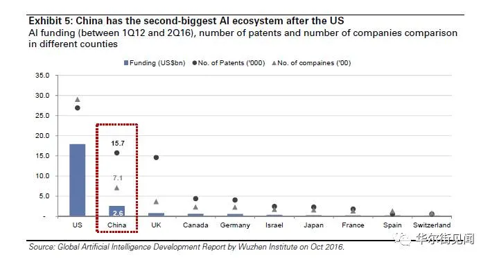乌镇智库和网易科技的联合报告显示,2012年到2016年上半年之间,流入中国AI领域的投资共达到26亿美元,位列全球第二,是美国的七分之一、英国的三倍。