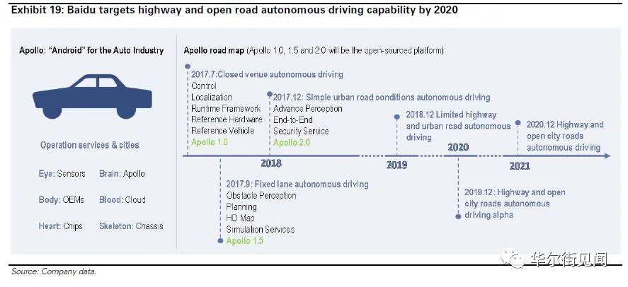 高盛分析认为,Apollo自动驾驶项目的商业化道路将类似于谷歌的安卓系统,可通过广告、App下载、高清地图服务和相机视觉软件4个领域实现增量收入。