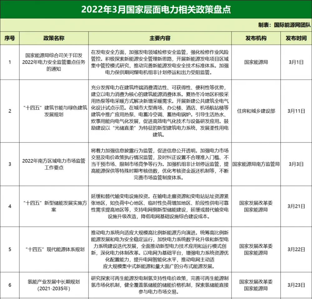 地方层面电力相关政策盘点,如下图所示: