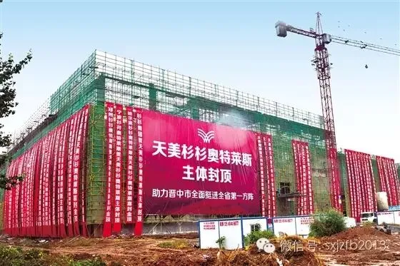 10月31日,山西天美杉杉奥特莱斯购物广场主体工程已全面封顶,进入内装修阶段。该项目于今年3月18日正式开工建设,在市委、市政府和晋中开发区的大力支持和鼎力帮扶下,历经7个月的工程建设,提前完成主体工程建设,预计明年9月可正式投入使用。