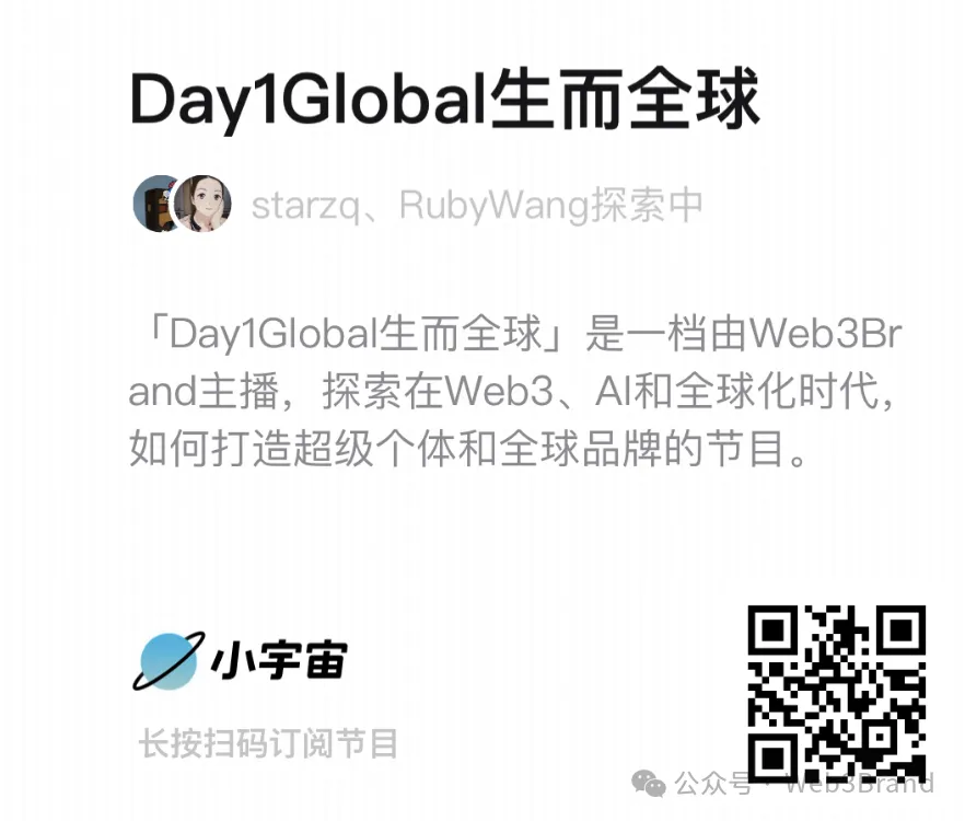 做全球化时代的超级个体,创造属于自己的故事,拥有你的品牌。我们研究和采访在世界各地的内容创作者与品牌创始人,探索在 Web3 和 AI 时代,打造全球品牌、构建商业模式的宝贵经验,并与你分享。