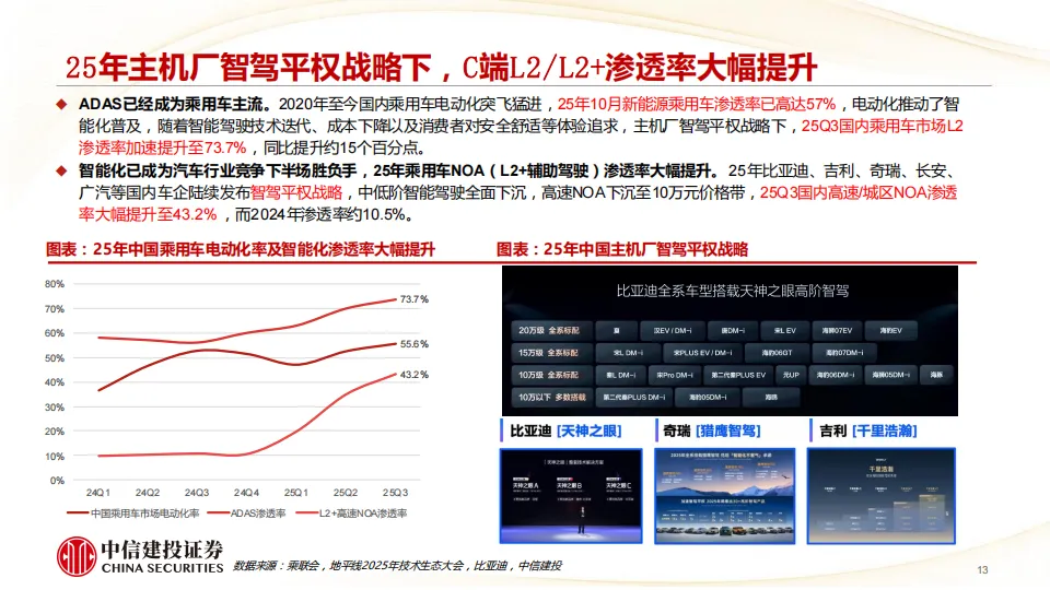 我们认为2-3年内L3有条件/L4无人驾驶有望完成技术突破并加速普及,Robotaxi商业模式将跑通,产业价值链将向智驾解决方案提供商及流量出行平台商集中,看好具备软硬一体解决方案能力的主机厂及Tier1、出行平台及运营商、芯片等自主可控、激光雷达及线控底盘等增量零部件,主机厂科技属性有望重估。