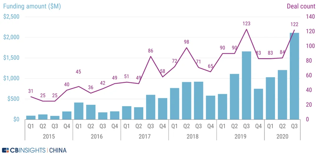 近年来各方对 AI 制药领域的关注度明显上升,资本持续注入,药企研发力度逐步增强,AI 制药相关技术的迭代速度也明显加快。可以预见人工智能技术正逐步从多方面渗透到生物制药领域,并有机会为行业带来重大变革。针对这些趋势,CB Insights 中国对 AI 制药领域进行了全面梳理。2020 年, AI 制药领域在资本市场获得了很高的关注度,对于 AI 技术在药物研发中的真正作用也引发了一系列讨论。从供给端看,随着基因检测技术的进步,各种药物研发数据的不断积累以及计算机硬件设备与人工智能算法的改良使得 AI 技术在生物制药领域的发展获得了良好的条件。而在需求端,传统生物制药企业在进行新药研发时长期存在的研发周期长、失败率高、成本高等痛点也给 AI 制药行业带来了巨大的增量。这些来自供需两端的驱动力也真正助推了这场资本热潮。图 | 融资金额及数量 (来源:CB Insights 中国)