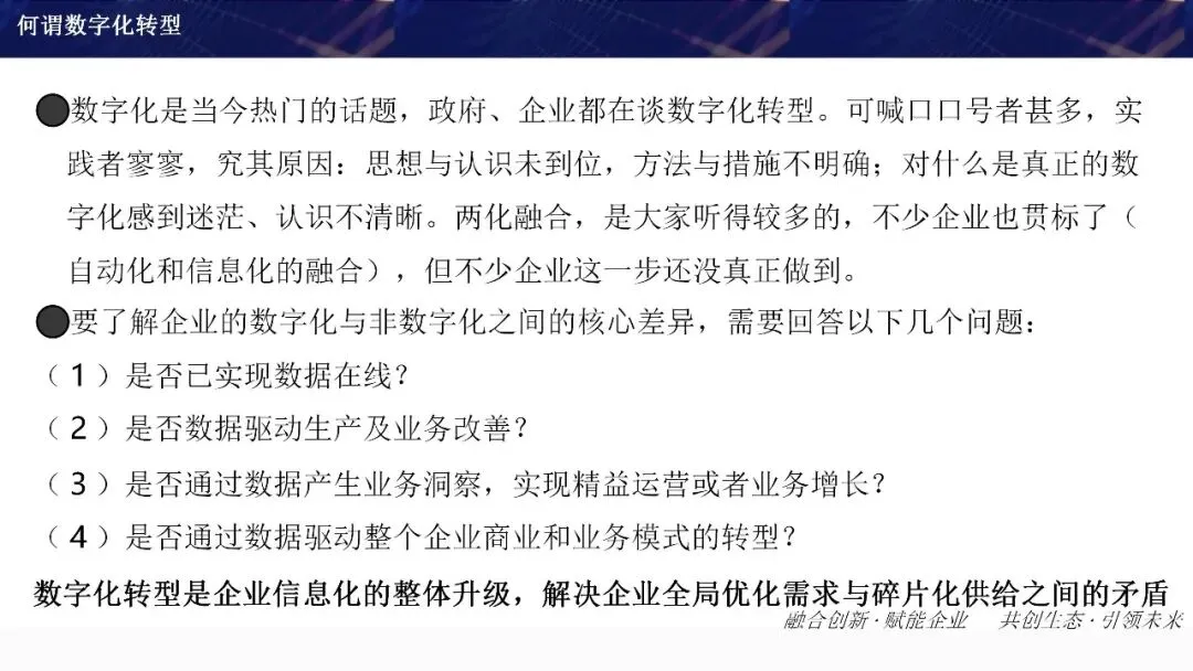 工业企业数字化转型是指利用新一代信息技术,如物联网、大数据、人工智能、云计算、5G等,对传统工业生产、经营、管理及服务模式进行系统性、深层次重构的过程。它不仅是单一技术的应用,更是技术、流程、组织和商业模式的全方位变革。