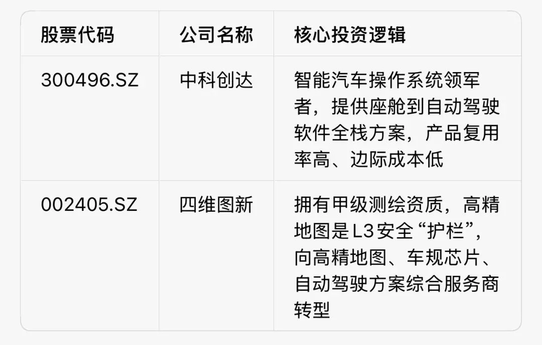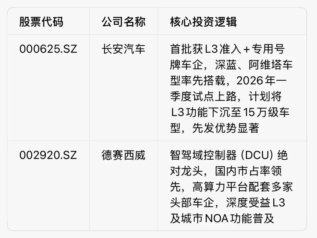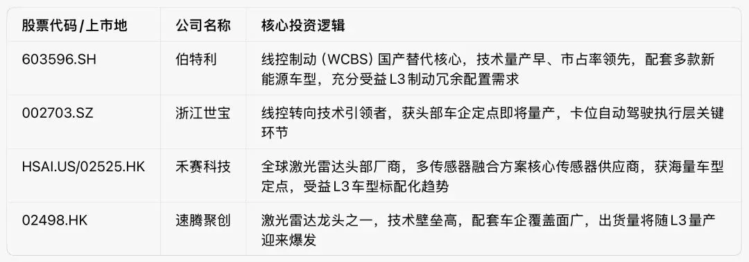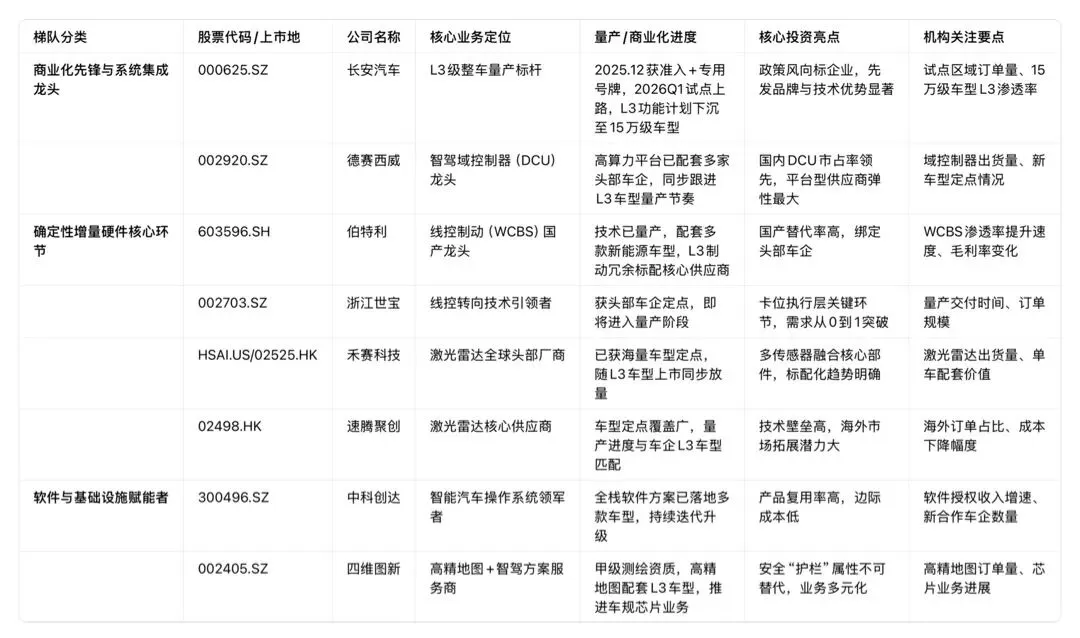 附:L3级自动驾驶产业链核心标的跟踪清单