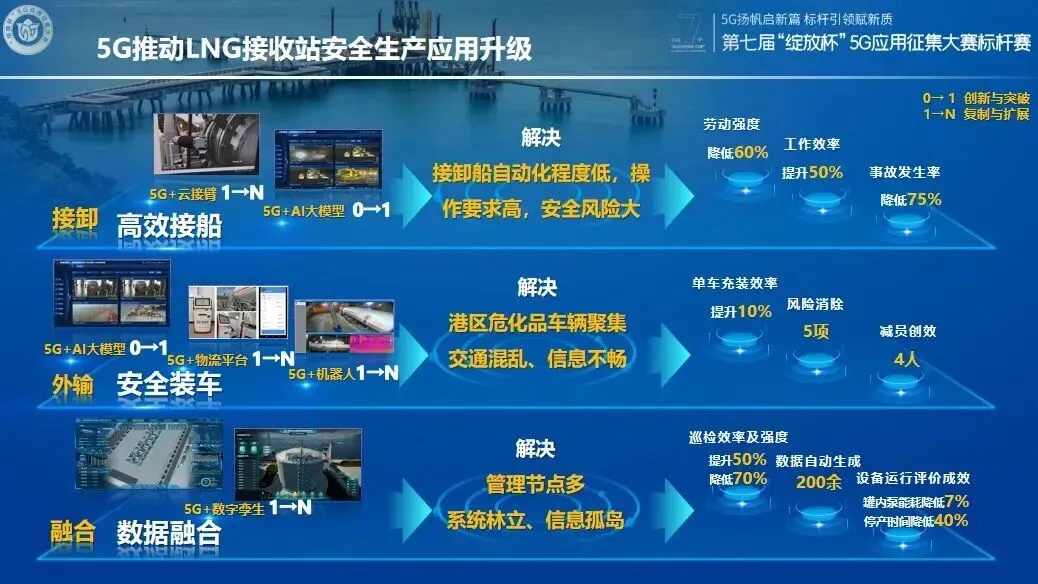 深圳LNG接收站作为全国首座5G智能LNG接收站,以“维护、运行、储存、接卸、外输、融合”六大核心场景为基础,全面部署5G全场景智能应用,能够智能识别不规范、不安全行为,显著提高接卸船与装车作业的安全性和可靠性,先后获“绽放杯”5G应用征集大赛全国赛一等奖、标杆赛金奖,为培育全行业新质生产力贡献了“管网方案”。