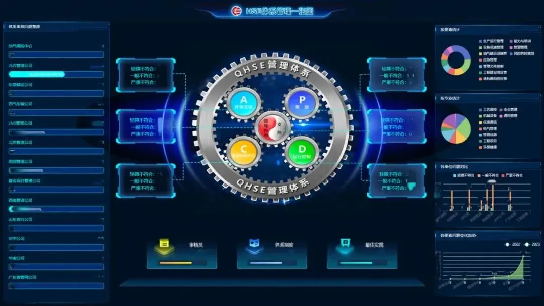 HSE管控一体化平台围绕安全、环保、体系、职业健康、质量、应急等管理业务形成管网HSE业务数据资产,实现对管网HSE业务的全过程监控和闭环管理。平台运行以来,已向14个省级双预防数字化平台推送风险隐患数据,累计生成作业许可证超11万张,办票效率提高60%,同时汇集安全生产岗位责任履职数据1800余万条。