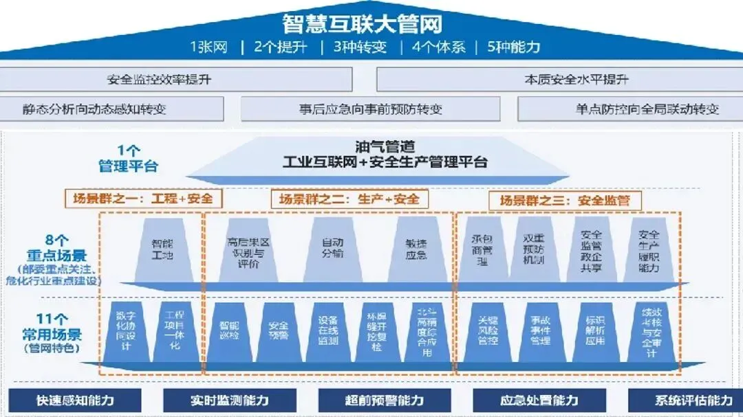 “工业互联网+安全生产”管理平台聚焦关键场景,推动安全风险智能化管控、油气长输管道安全风险监测预警等融合应用落地,支撑集团公司多级协同与安全标杆建设。平台荣获第五届中国工业互联网大赛“最具应用价值”奖,入选工信部2023年工业互联网试点示范项目名单、工信部2023年度智能制造优秀案例。