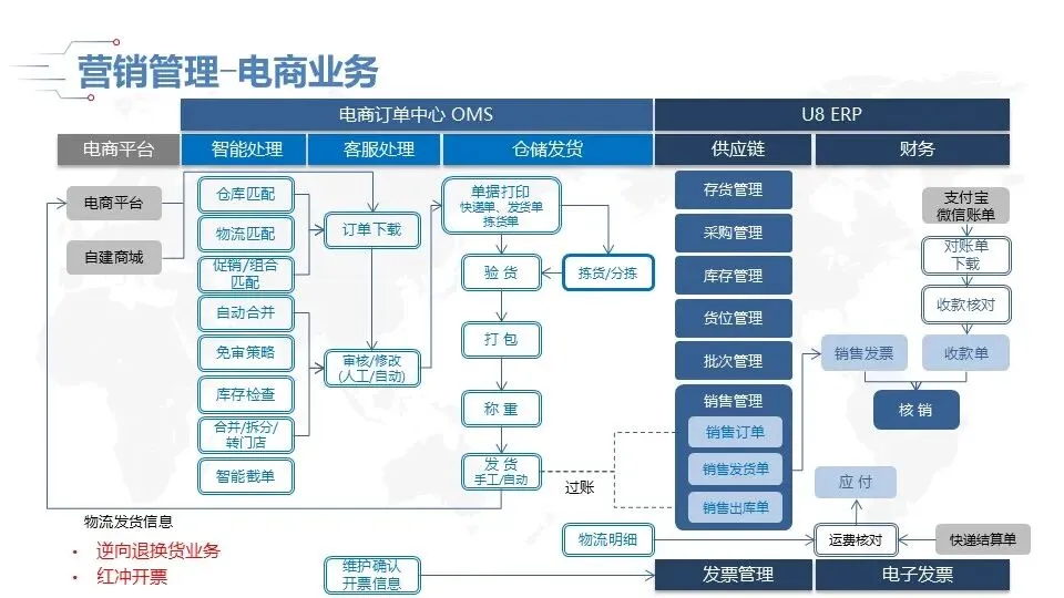 电子发票与税务:金税四期直连,销售开票自动匹配发货单,进项发票 OCR 识别自动勾稽。