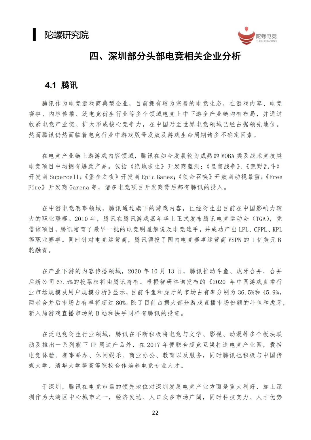 以下为陀螺研究院《深圳市电竞产业调研及分析》深圳部分头部电竞相关企业分析内容: