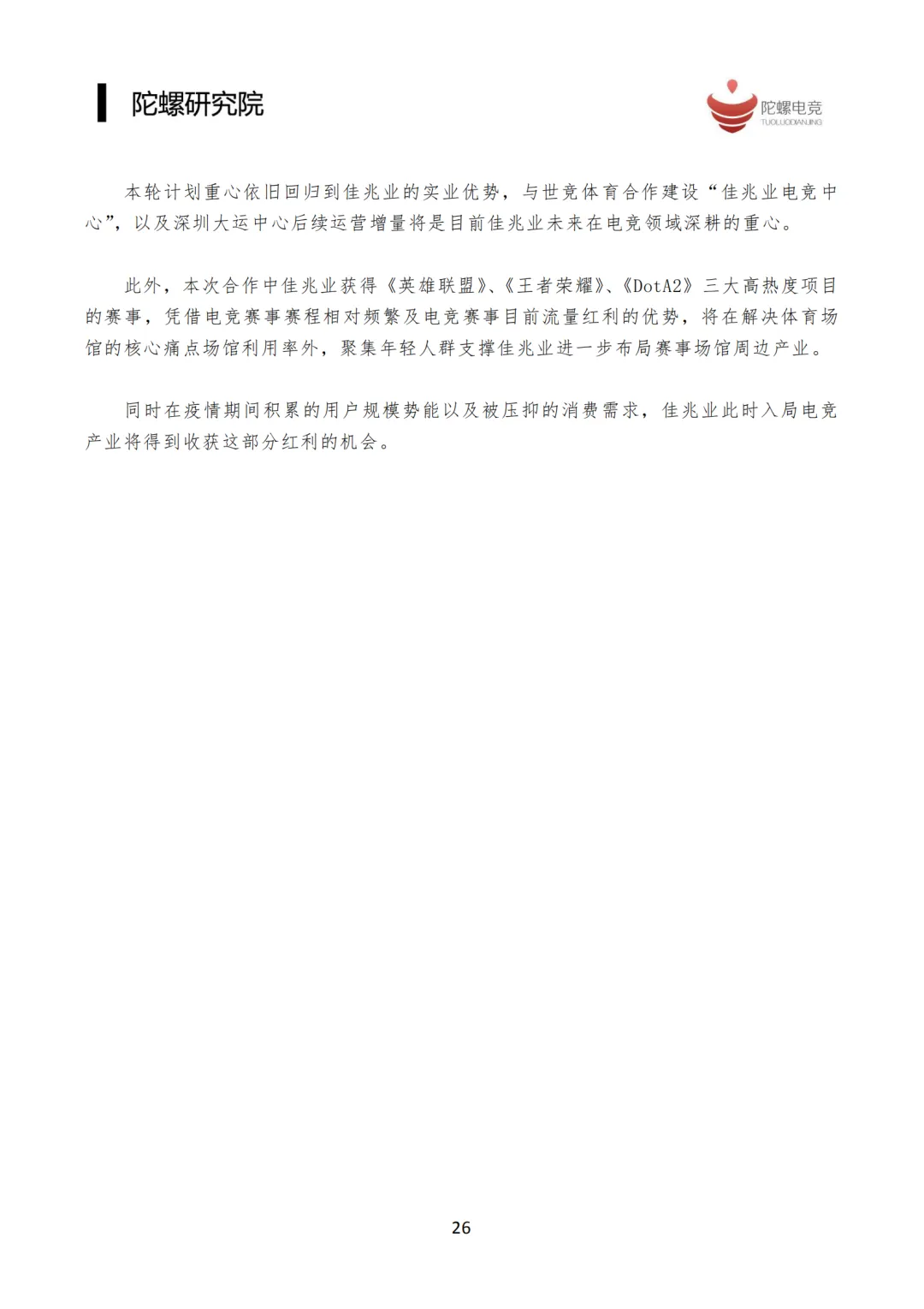 佳兆业入局电竞产业并选择在深圳深度布局,背后是地产等传统资方逐步重视电竞产业。电竞作为新兴体育项目正处于推动受众扩张的下沉阶段,佳兆业涉猎的地产、酒店、医疗、餐饮等业务都能够为自身电竞板块提供助力。“电竞+”大趋势下,佳兆业所属的多维度资源将为其电竞板块起步及发展奠定坚实基础。