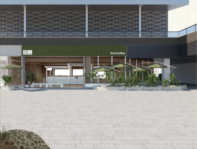 Grid Coffee 苏州首店落址仁恒仓街,以「俯仰之间」为灵感,在空间中增加飞檐石材等元素,呼应苏州的多元包容。