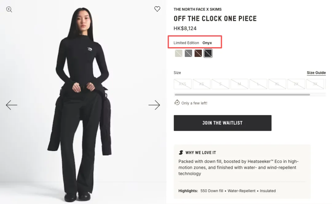 Skims长期采用“限量发售”模式,每次上新只推出少量库存,营造“错过就要等下一轮”的紧迫感。社交平台上频繁出现的“已售罄”“补货提醒”等信息,不仅没有引起用户的反感,反而强化了产品的受欢迎程度和稀缺感,使拥有Skims成为一种专属身份象征。