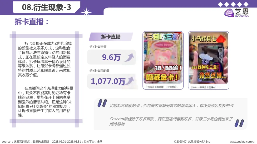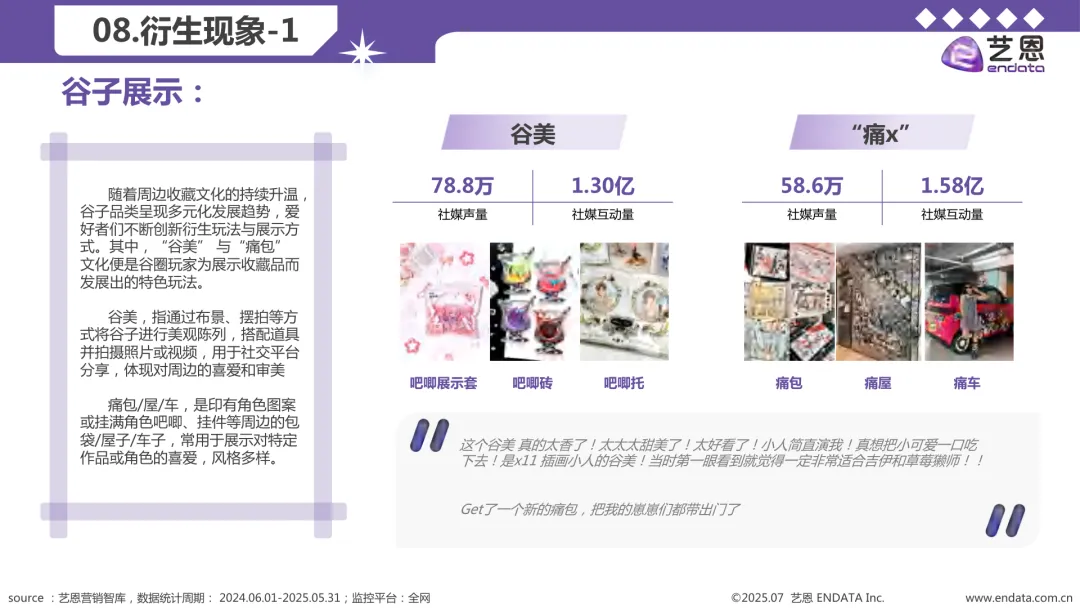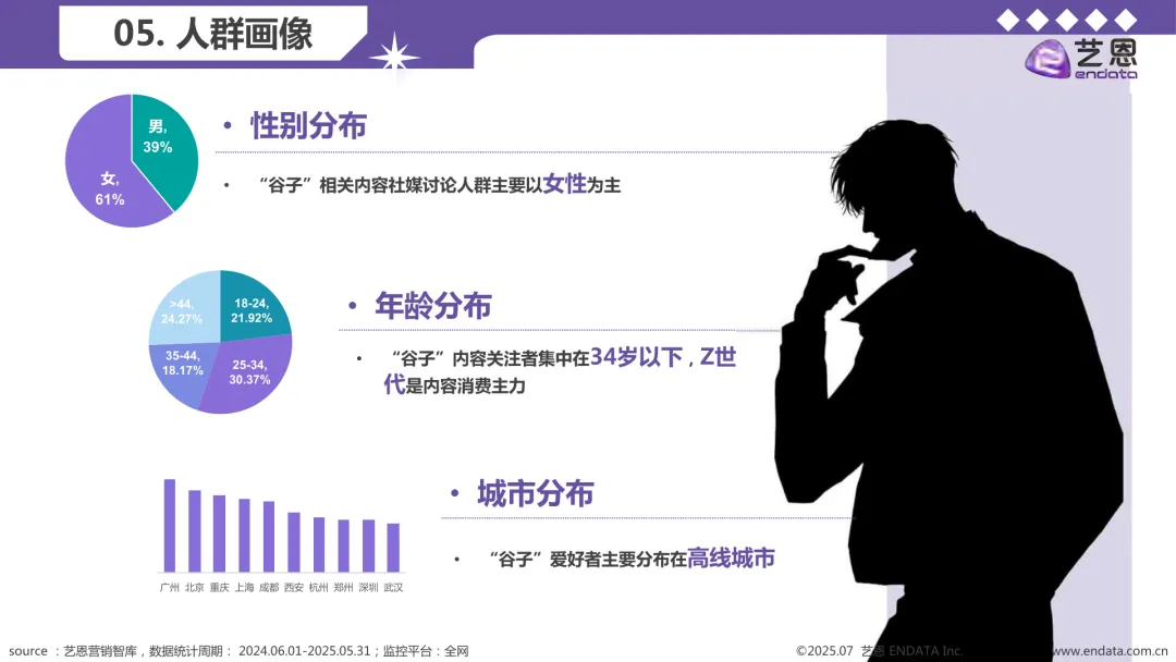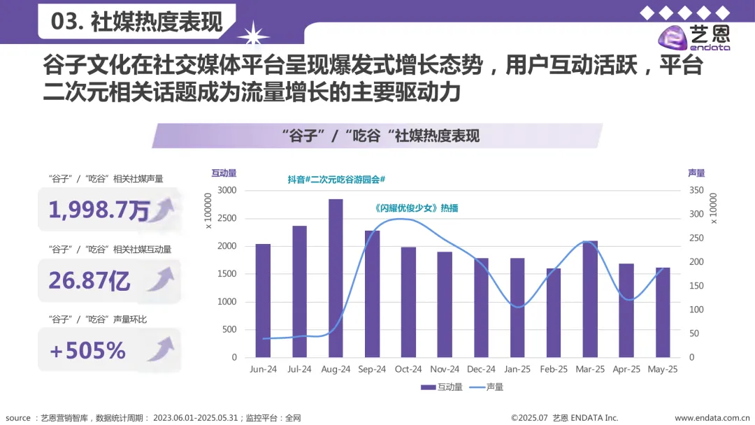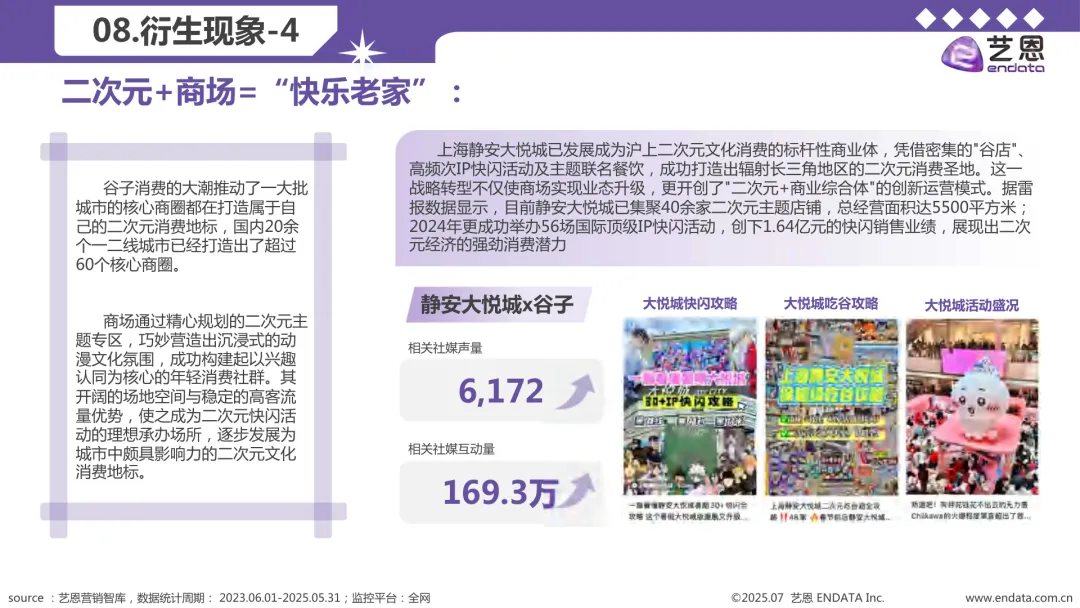 其爆火原因在于情绪消费兴起,二次元内容高度契合消费者情感需求。2024 年泛二次元用户规模达 5.03 亿人,Z 世代占比 95%,消费潜力巨大。谷子经济市场规模持续扩大,2025 年预计突破 2000 亿元。吧唧、卡牌等品类占据主导,社交媒体热度高,相关话题互动量大。用户以女性、Z 世代为主,集中在高线城市。品牌纷纷探索与二次元文化的联结,实现内容二次元化转译,搭建与 Z 世代对话的文化接口。
