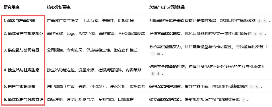 研究方向:品牌名称、Logo、视觉色调、品牌故事、A+页面/旗舰店4.供应链与公司背景: