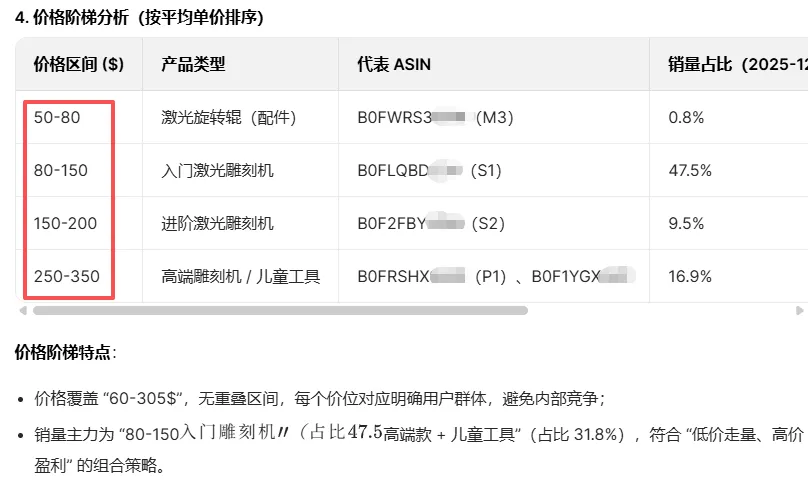 我是一名亚马逊美国站的产品开发人员,目前想要针对一款品牌做细化的研究,目的是想要找出打造品牌的底层逻辑。目前你看到的是这个表格,是这个品牌店铺下的所有产品销量以及销售额等数据,空白的地方是下载的时候遗漏了或者本身就不存在销量,不要张冠李戴。现在我需要你帮我做的是,利用Python,结合我提供的这份表格,帮我分析出产品线广度与深度、上架节奏、关联性、价格阶梯等维度特点,也可以补充我可能遗漏的点,并说明理由。要求你充分结合数据,不要放大和延伸,一切跟着产品数据走,并且有复查校验的过程。保证数据结论的真实,权威,可靠,有参考性。分析有理有据,不要张冠李戴,权威性高,落地性强,信服力高。AI结论摘录1.0: